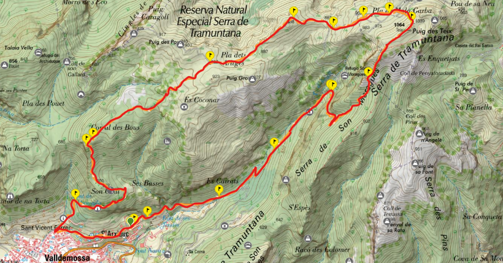 ITINERARIO de la ruta “Puig del Teix por el Camí des Caragol y el Camí de Ses Fontanelles”