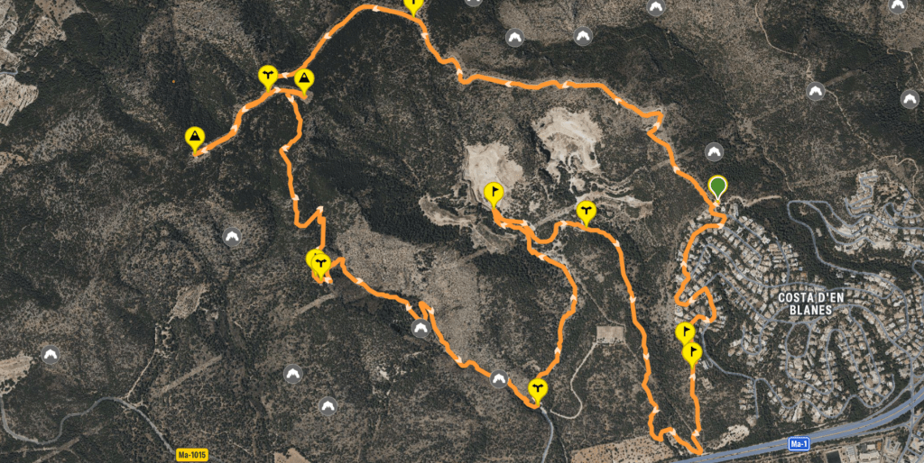 ITINERARIO de la ruta “Pi de Ses Creus y Pedreres de Na Dalmau desde la Costa d’en Blanes”
