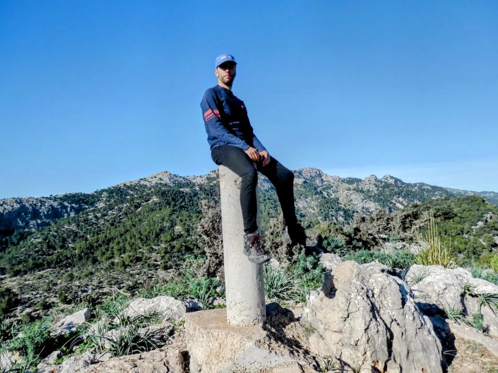Para ir a la cima del Puig de Son Nassi, no es necesario saltar por el «botador». Podemos dirigirnos por nuestra derecha dejando la pared de piedra en seco a la izquierda e iniciar el ascenso hasta la cima, siguiendo algún que otro hito; o podemos saltar por el “botador” y seguir paralelos a la pared de piedra, que ahora quedaría a nuestra derecha. La pared tiene una alambrada, que impide saltar por ella, pero esta pared finaliza en una roca y por aquí si que se puede pasar. Nosotros nos decidimos por esta segunda opción. El ascenso hasta la cima cuenta con cierta dificultad, por lo que en muchos casos hay que emplear también las manos. Alcanzada la cima podemos disfrutar de unas bonitas vistas de la bahía, la Serra de Tramuntana, Coll de Sóller.