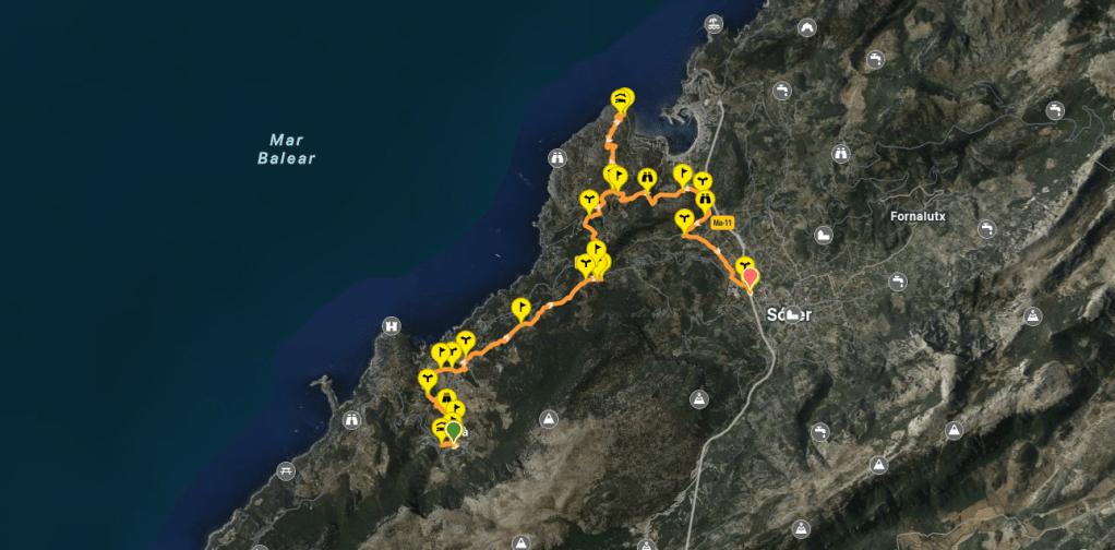 Al tratarse de un recorrido solo de ida dejamos un coche en Sóller, en el lateral derecho de la Carretera de Desviament (Ma-11) y el otro en Deià, en el parking que hay a la derecha de la carretera Ma-10 Valldemossa-Deià, frente al carrer del Teix, justo donde finalizamos la Etapa 5 y empezamos la de hoy.