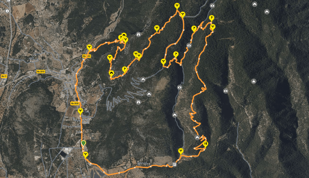 Después pasamos por la Subestación eléctrica de Bunyola y finalmente enlazamos con la carretera Ma-2020, que tomamos por la derecha hasta llegar al Cementerio de Bunyola, donde dejamos estacionado nuestro coche, dando por finalizada esta fantástica excursión.