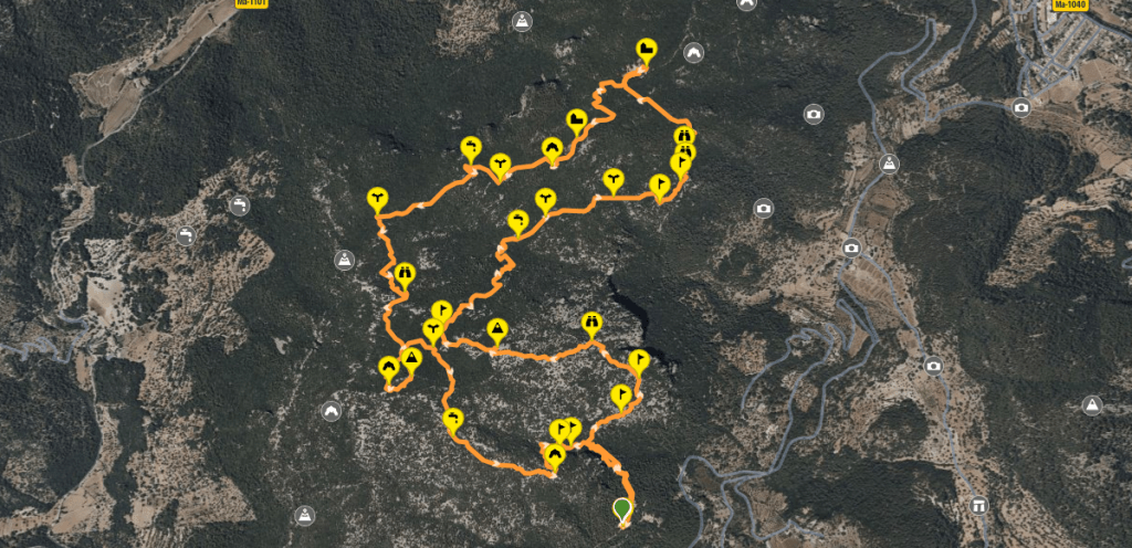 La ruta “Fita del Ram por el Pas de Gotleu”, es otra variante más de las varias que hay para subir a esta emblemática cima. En esta ocasión subimos por el Pas d’en Gotleu, equipado con cable, escaleras y pedal de apoyo. Coronamos la cima de Na Ferrana, visitamos la ermita de Maristel-la y descendemos por el Pas de s’Ego, una cornisa natural, bastante inclinada. Es una variante poco frecuentada que discurre por numerosos caminos y senderos, en los que se observan restos de la antigua actividad carbonera y calera que explotaban económicamente esta zona boscosa. La ruta presenta desniveles de cierta consideración, con subidas y bajadas exigentes.