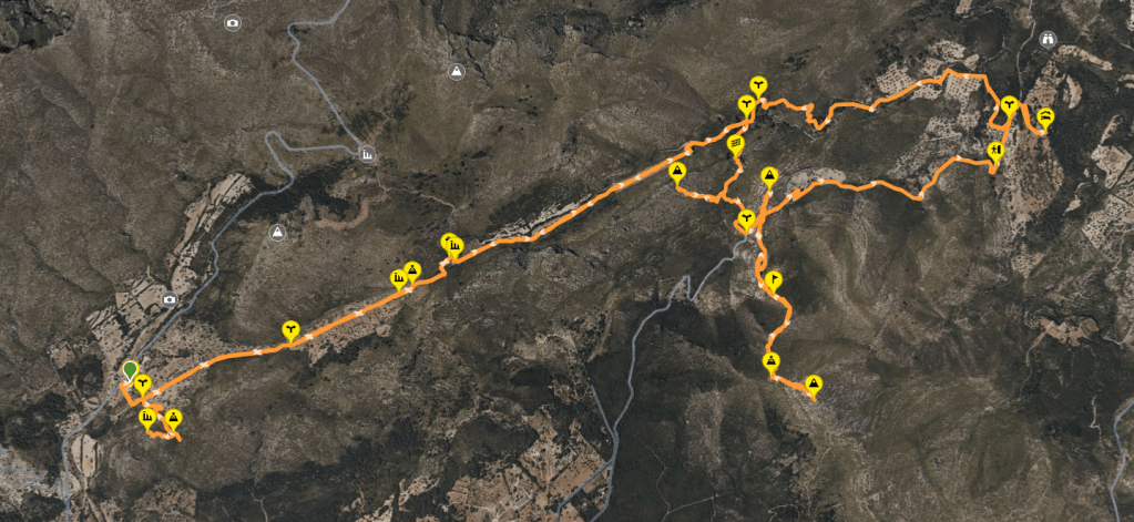 Fecha de Inicio: 30 Enero 2024 Hora de Inicio 09:41 Distancia: 16,47Km Altitud min: 69 m Altitud máx: 402 m Desnivel Positivo: 722 m Desnivel negativo: 722 m Altitud inicial: 224 m Tiempo Total: 08:13 Tiempo Caminando: 05:22 Velocidad media: 2,9 km/h Circular Moderada