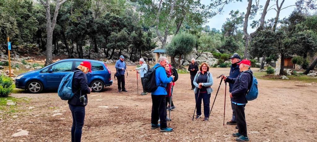 El inicio de esta ruta lo he situado en el Área Recreativa Menut I, a la que llegamos por la carretera Ma-10, que une Pollença con el Santuari de Lluc. Pasado el punto kilométrico 17, a la derecha de la carretera viniendo desde Lluc, se encuentra la entrada a este sitio, donde dejamos aparcados nuestros vehículos. Comenzamos a caminar en dirección Noreste hasta dar con el camino que viene del Área Recreativa Menut II. Este camino cruza la carretera por debajo de un puente que vemos a nuestra izquierda. Nosotros continuamos por la derecha donde hay un portillo con una cadena y al lado un botador de madera por donde saltamos.