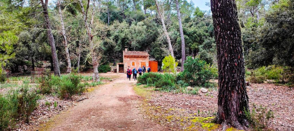 A continuación nuestro camino desemboca en la pista que antes habíamos abandonado en la bifurcación y que ahora tomamos por nuestra derecha. Unos metros más allá, tras cruzar el torrente de Binifaldó, vemos el pequeño Refugio de sa Coma de Binifaldó, recientemente restaurado y de uso exclusivo de las personas autorizadas. Proseguimos la marcha y un poco más arriba llegamos a otra bifurcación. De frente el camino continúa hasta enlazar más arriba con el Camí Vell de Lluc a Pollença (GR 221). Nosotros tomamos el camino de nuestra izquierda, al principio poco claro.