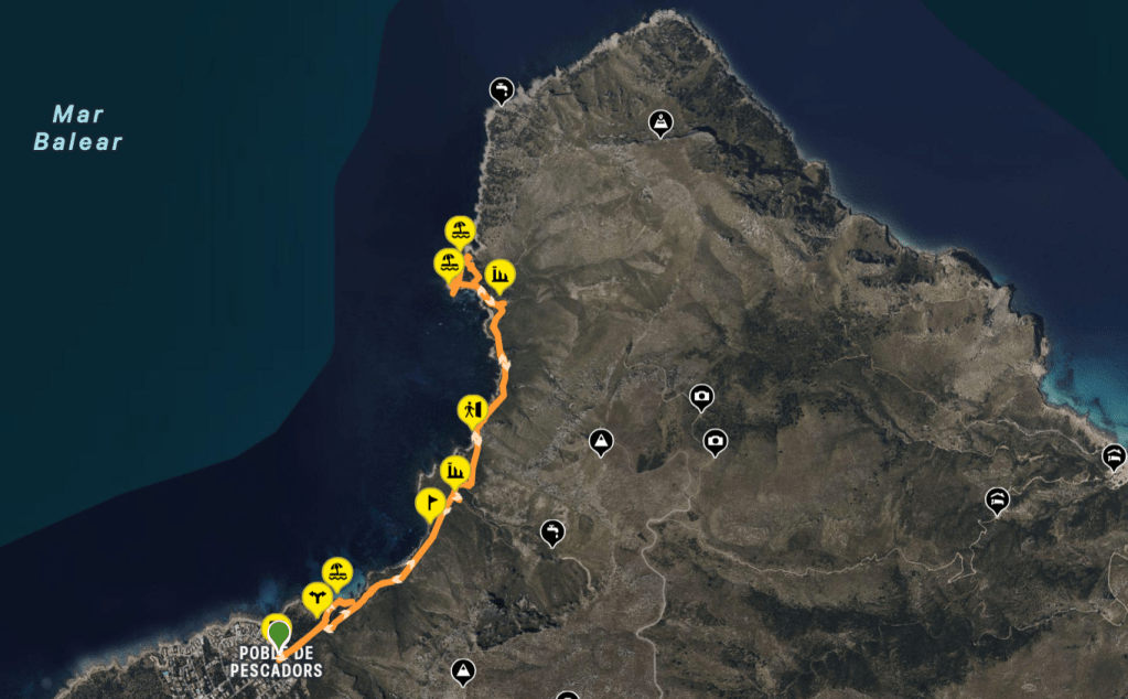 La ruta “El Caló de Ferrutx desde Betlem” es una ruta de ida y vuelta por uno de los litorales más salvajes y bellos de la Isla, en pleno Parc Natural de Llevant. Es un recorrido que combina senderismo de montaña y ambiente marino, ofreciendo vistas panorámicas constantes sobre la Bahía de Alcudia, acantilados abruptos, y un paisaje muy poco alterado por el ser humano. El destino, El Caló de Ferrutx, es una cala rocosa y muy solitaria, a la que no se llega por carretera, por lo que conserva una atmósfera salvaje. Es una ruta corta sin problemas técnicos ni de orientación ideal para quienes buscan tranquilidad, y paisaje auténtico lejos de las playas masificadas.