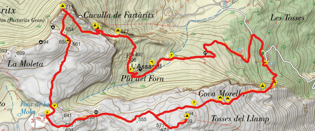ITINERARIO de la ruta “Cuculla de Fartàritx por el Passet de la Cova Morella y el Pas de la Moleta”