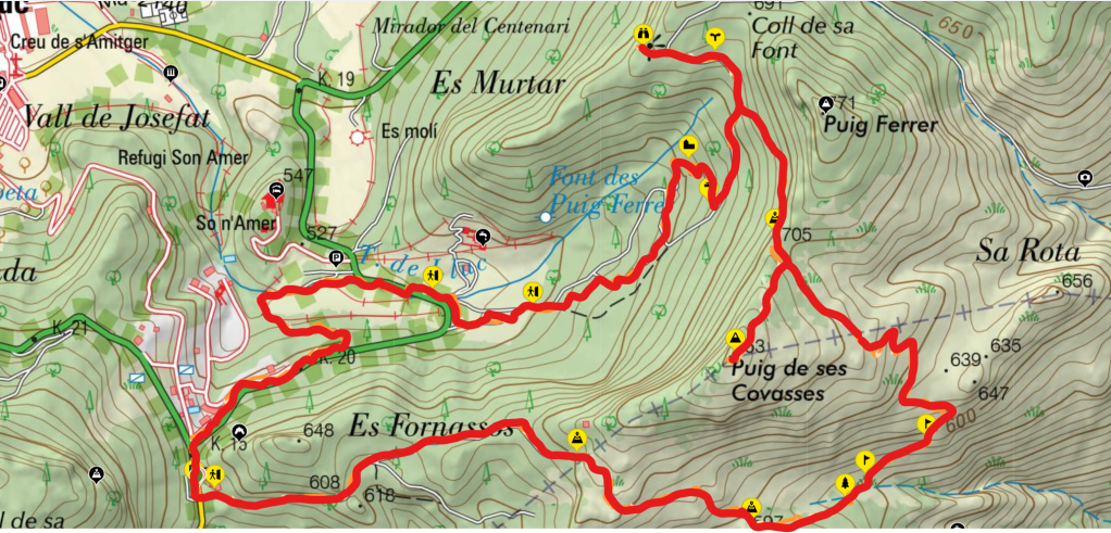 ITINERARIO de la ruta “Puig de Ses Covasses desde el Coll de Sa Batalla”