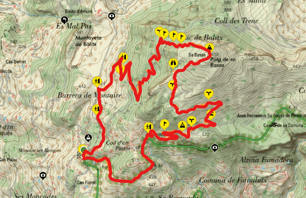 ITINERARIO de la ruta “Puig de sa Bassa por la Barrera de Moncaire”