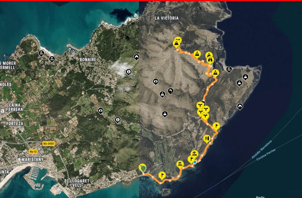 La ruta “Talaia d’Alcúdia desde Alcanada”, es una ruta de ida y vuelta, larga, de dificultad moderada y otra alternativa para alcanzar la cima de la Talaia d’Alcúdia, una montaña modesta en altura pero espectacular en vistas, ya que separa la Bahía de Alcúdia de la Bahía de Pollença. A diferencia de la subida clásica desde la ermita de la Victoria, esta versión que parte de Alcanada añade un componente mucho más aventurero, comenzando junto al mar —con vistas a la isla y su faro— y va adentrándose progresivamente en el interior montañoso. El recorrido atraviesa caminos, pistas, antiguos senderos y cruces de rutas que conectan puntos clave como el entorno de Coll Baix. Es una travesía muy completa que combina costa, montaña y paisaje salvaje. Todo ello hasta alcanzar la cima, donde el premio son unas vistas panorámicas de 360° sobre el norte de la isla.