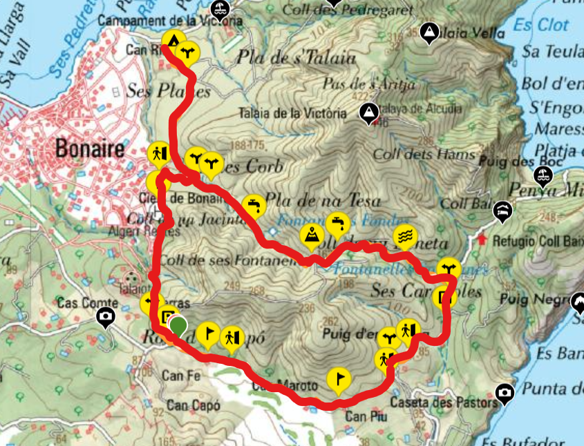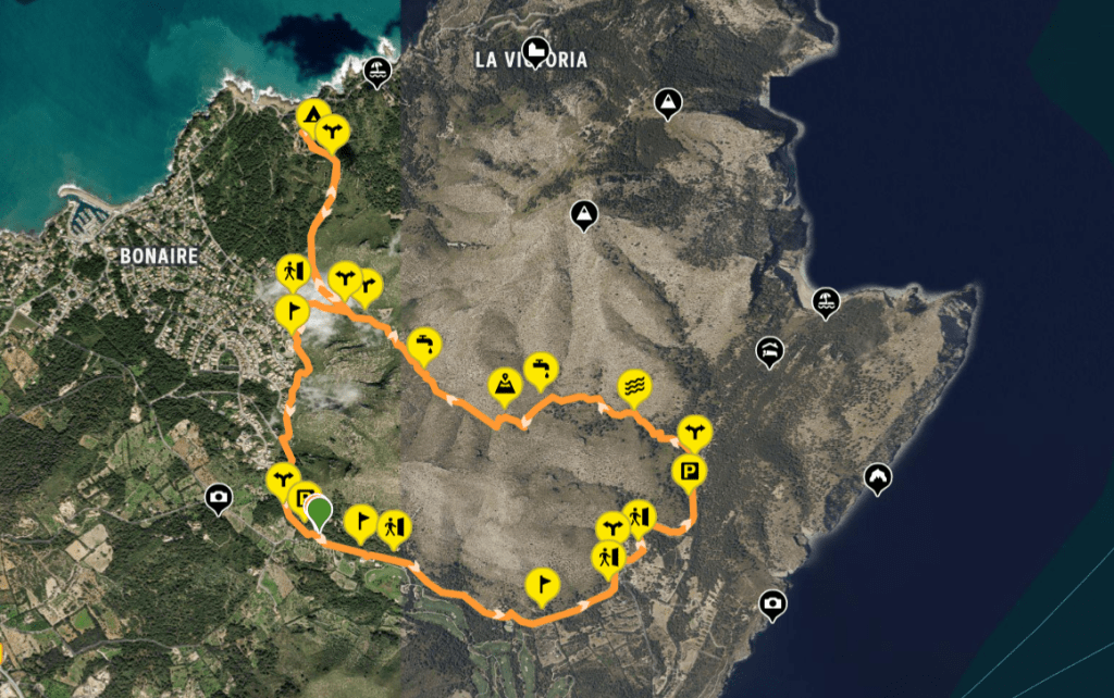 La ruta “Ses Fontanelles y Campamento de la Victòria”, es una ruta circular de dificultad moderada, ideal para descubrir uno de los rincones más auténticos del norte de Mallorca, combinando naturaleza, historia y vistas espectaculares. Este itinerario se sitúa en la zona de La Victòria, dentro del municipio de Alcúdia, un entorno conocido por su belleza salvaje, sus pinares mediterráneos y su costa escarpada. La ruta conecta el Camí de la Muntanya y Ses Fontanelles con el Campamento de la Victòria, uno de los campamentos juveniles y de actividades en la naturaleza más conocidos de Mallorca. A lo largo del recorrido, el camino alterna tramos de bosque, pistas de tierra y zonas algo más rocosas, ofreciendo una experiencia variada pero accesible para senderistas con un nivel medio.