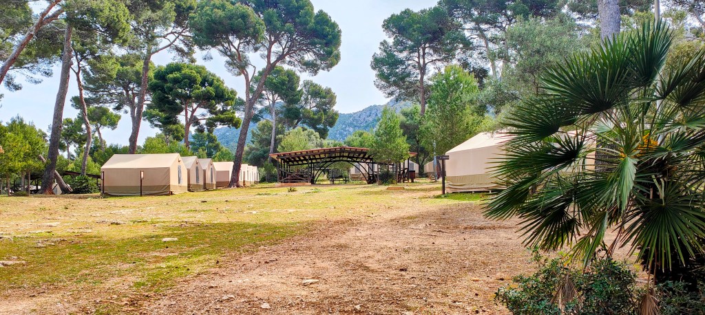 Seguimos por la izquierda y en breve entramos en el recinto del Campamento de la Victòria. Hoy es uno de los campamentos juveniles y de actividades en la naturaleza más conocidos de Mallorca, gestionado por el Govern balear a través del IBJove. Tiene una capacidad de unas 200 personas y cuenta con zona de acampada con tiendas, comedor y baños, pistas deportivas y espacios para talleres y actividades. Actualmente sirve para colonias escolares y campamentos de verano, actividades educativas y de convivencia, deportes y multiaventura (rocódromo, tiro con arco, senderismo) y estancias de grupos, asociaciones o familias. Cada año pasan por allí miles de niños y jóvenes.