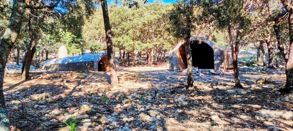 Proseguimos la caminata en suave subida y unos quinientos metros más allá nos topamos con un porche medio derruido que en su día fue empleado como refugio de los trabajadores de la zona. Aquí, a mano derecha, sale uno de los caminos de carro que recorre la Mola de Son Pacs. Esta Mola es una de las cumbres más representativas del entorno de Valldemossa, en plena Sierra de Tramuntana. Tiene una altura máxima de 713 metros. Se trata de un macizo de roca caliza cubierto por un denso encinar. La cima es plana y en ella se encuentran multitud de caminos y senderos conectados entre sí y con diversos lugares y elementos etnográficos.