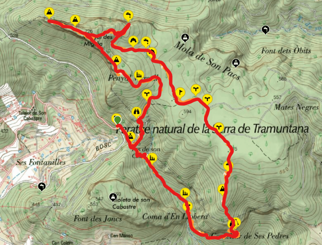 La ruta “Mola de Son Pacs y Mola de Son Ferrandell por el Pas de s’Ullastre”, tiene como objetivo recorrer antiguos caminos y senderos que discurren por ambas montañas, situadas en los términos municipales de Esporles y Valldemossa, subiendo por el Pas de s’Ullastre.