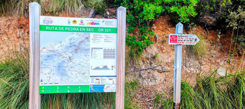 Si es por Esporles, cruzamos el pueblo por la calle principal (carretera Ma-1100) y al llegar a la altura de la iglesia, giramos a la derecha por el Carrer Nou de Sant Pere. Luego seguimos las indicaciones hacia Son Cabaspre. Después de un par de kilómetros y bastantes curvas, pasamos la entrada a esta urbanización, flanqueada por dos pilares. Pocos metros después, tomamos el desvío a la derecha, ascendente y con bastantes baches y continuaremos hasta encontrar a la derecha el punto de partida. Identificamos rápidamente este sitio porque allí se encuentra un panel informativo de la Ruta de Piedra en Seco, también el típico indicador GR 221, que marca la dirección a Valldemossa y al Refugi de Can Boi y una baja barrera abierta.